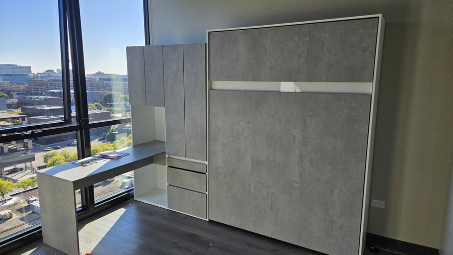 Finished project of assembly and mounting to the wall a big Murphy Bed with side cabinet/desk.